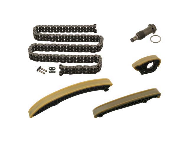 Contains: (1) Timing Chain - with Master Link, (1) Timing Chain Tensioner, (1) Left Guide Rail, (1) Right Guide Rail, & (1) Upper Guide Rail.